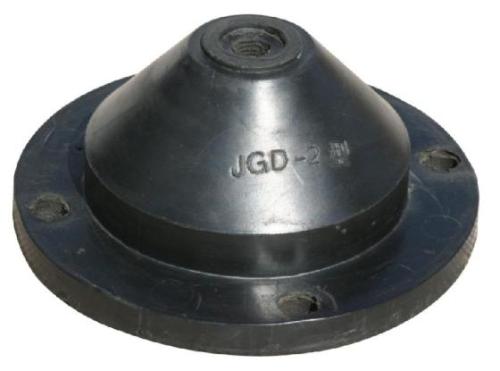 JGD型橡膠剪切隔振器是由內、外鋼套和中間的合成橡膠組成,經硫化呈中間圓錐體橡膠部分受剪切力,具有較大的變形范圍和較低的固有頻率。工作溫度范圍在-5℃~+50 ℃ ,溫度變化時,剛度也有所變化;阻尼比C/Cc>0.07。對于水泵,壓縮機、通風機、發電機組、冷凍機等機械設備的積極隔振和儀器儀表的消極隔振,都有良好的隔振效果。